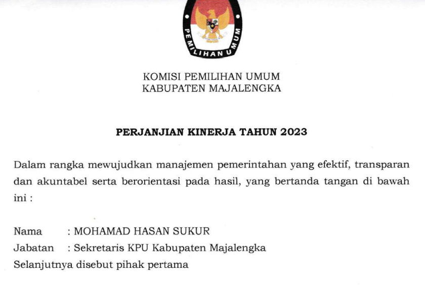 PERJANJIAN KINERJA SEKRETARIAT KPU KABUPATEN MAJALENGKA TAHUN 2023