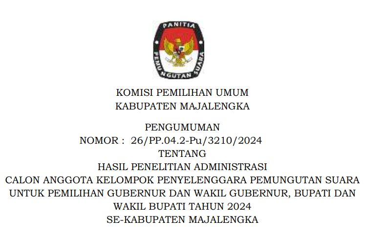PENGUMUMAN PENELITIAN ADMINISTRASI KPPS PILKADA MAJALENGKA TAHUN 2024